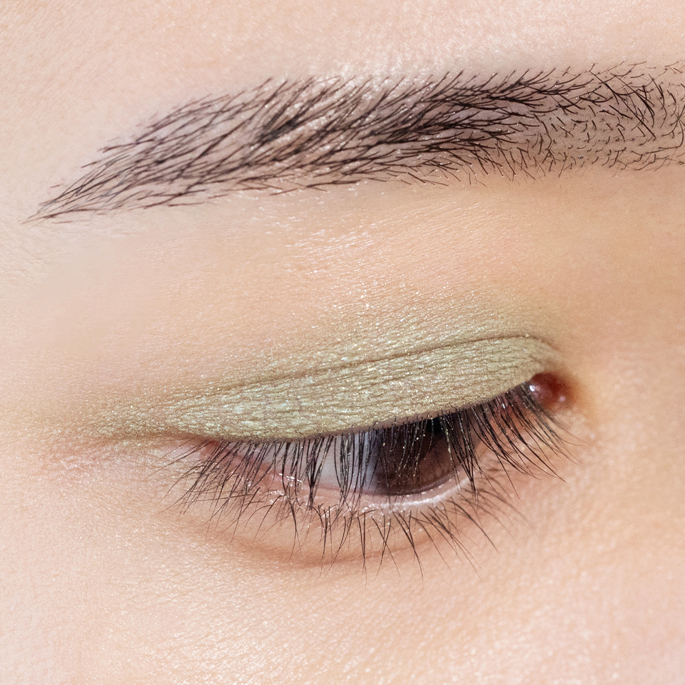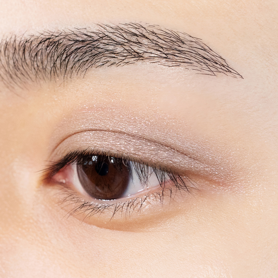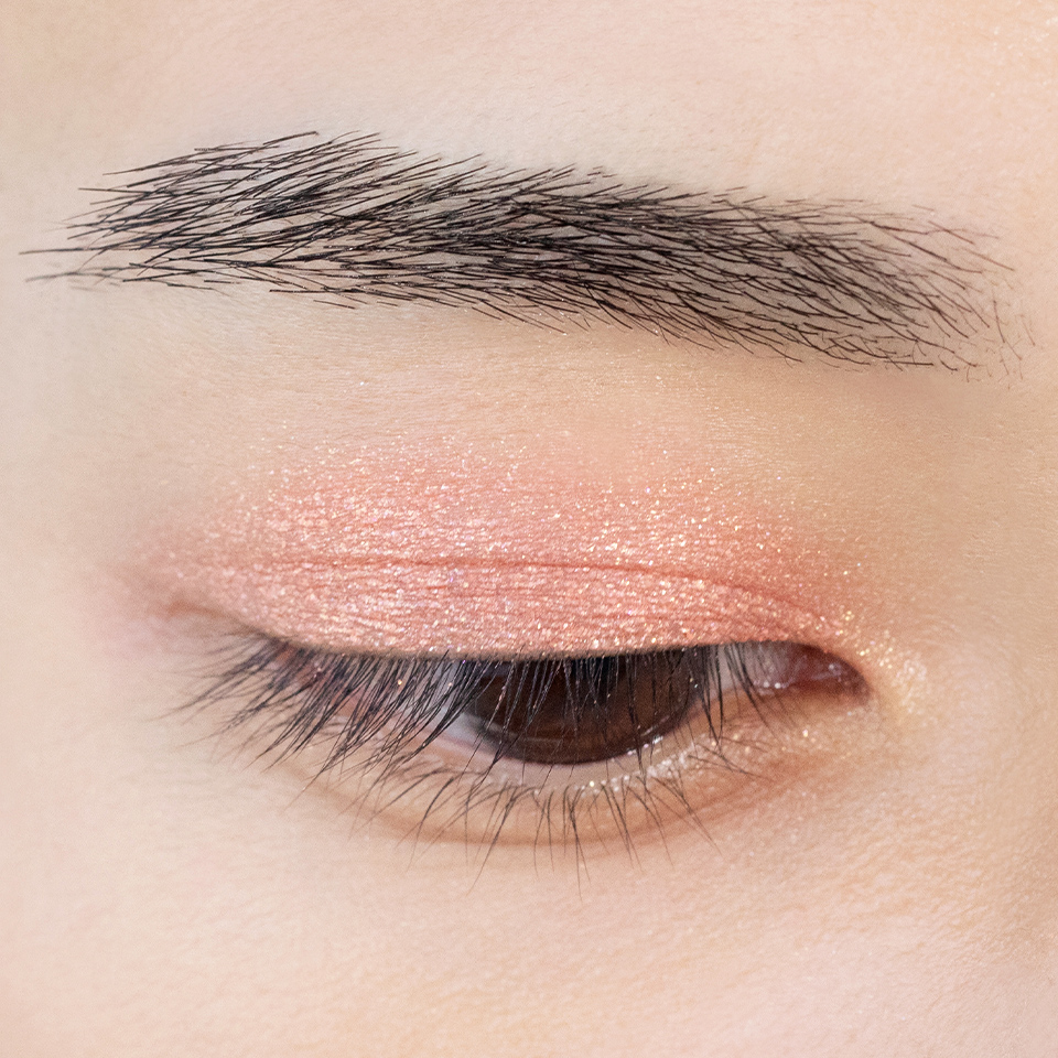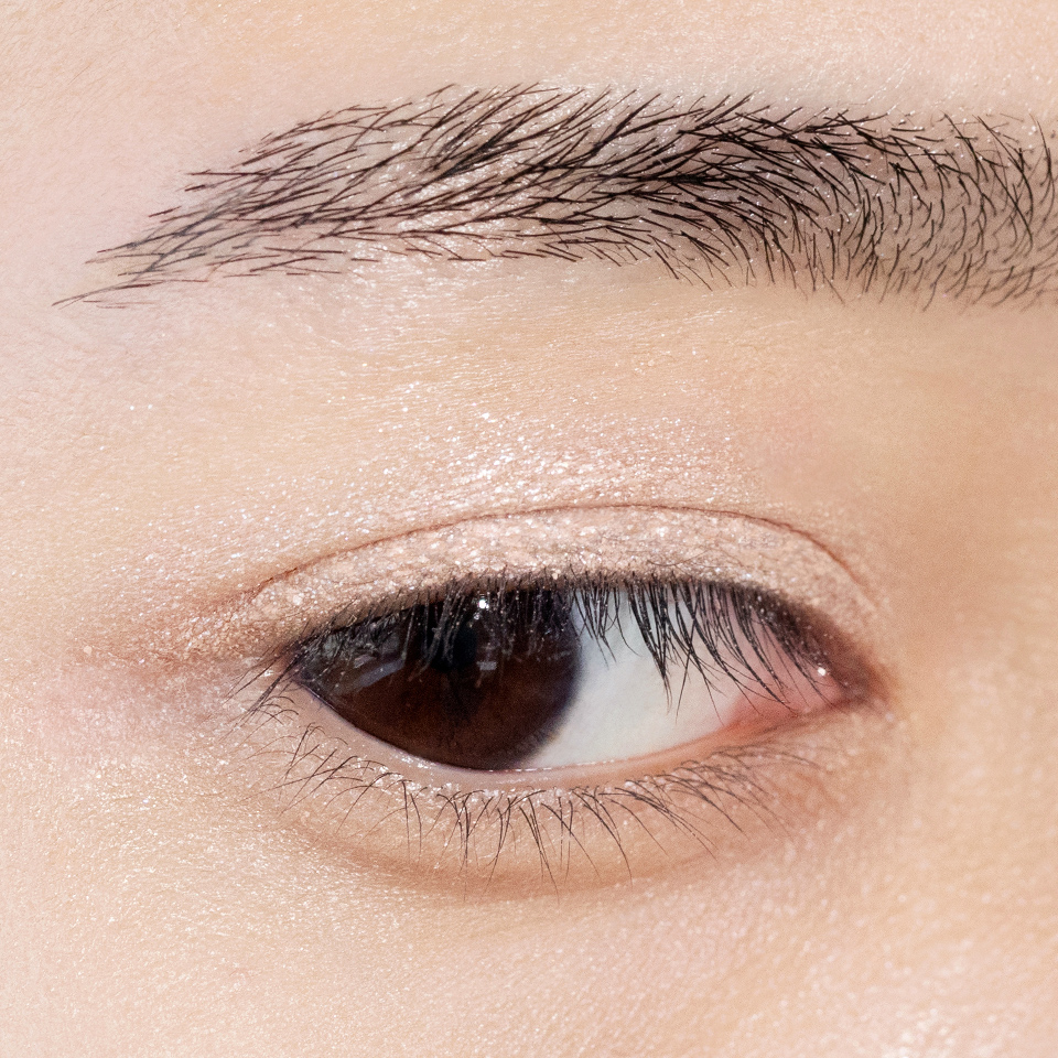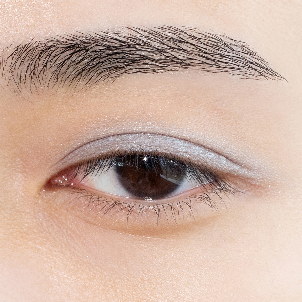 皮脂に強く崩れにくい水系処方のため二重幅に溜まりにくく、偏光パールの輝きが引き立つ高発色を長時間キープ。