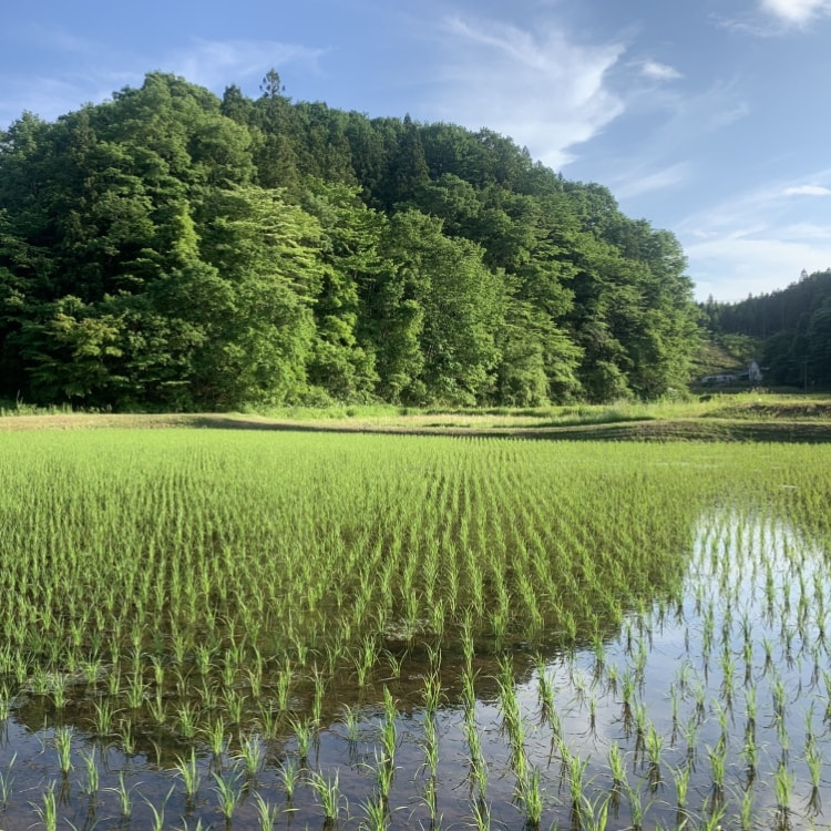山燕庵の田んぼは、石川県能登半島の山の麓にあります。そこで、栄養価の高い山の水を使い、自然循環型の減農薬農法によってお米を育てています。