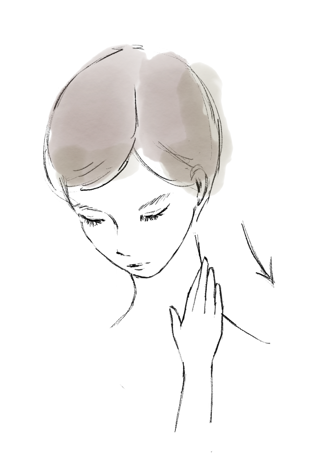 私は、お風呂上りに必ず首から肩にかけて伸ばし、内側に縮まった身体を一気に解放させていきます。
